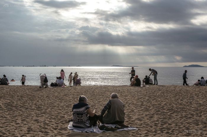 三亚湾海边休闲的候鸟老人