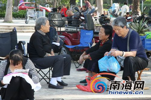 三亚过冬老人扎推海月广场